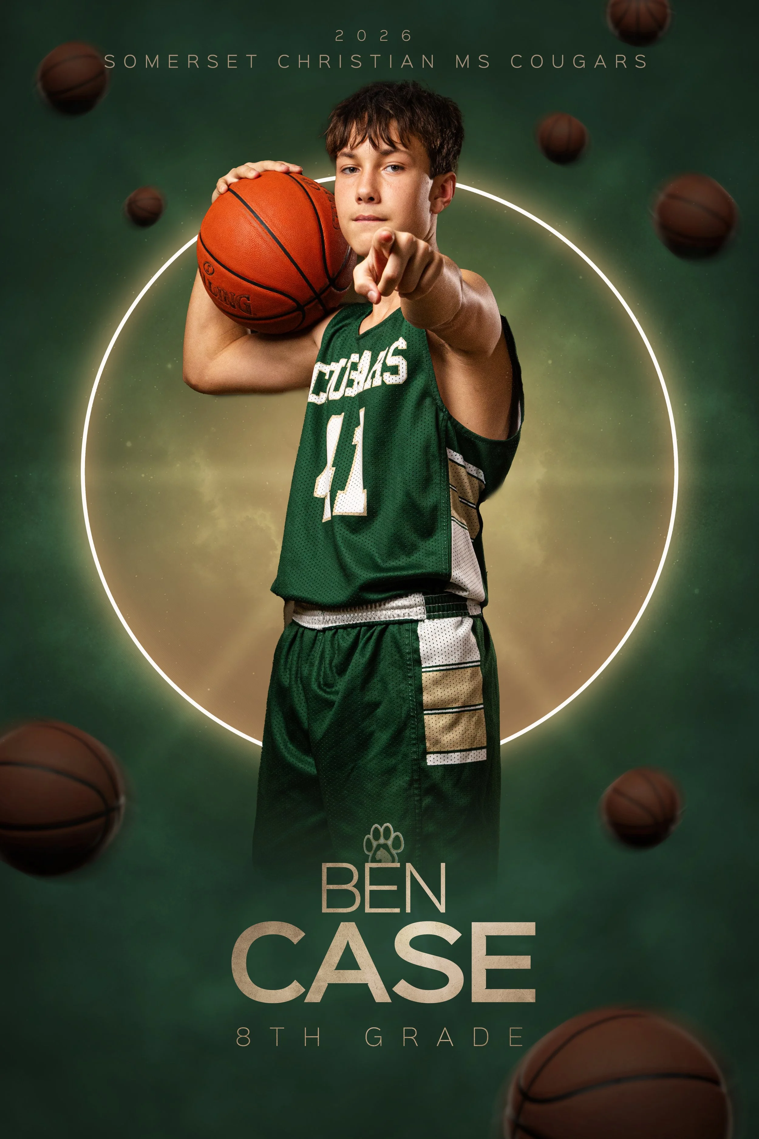 Do you want to really HIGHLIGHT your athletes? Our most popular package will make them stand out from the rest. We use strobes, colored lighting, fog, and other atmospheric elements to create a dynamic and memorable media day. Each player gets 3 poses that they can use for whatever props, actions, or poses they may choose.